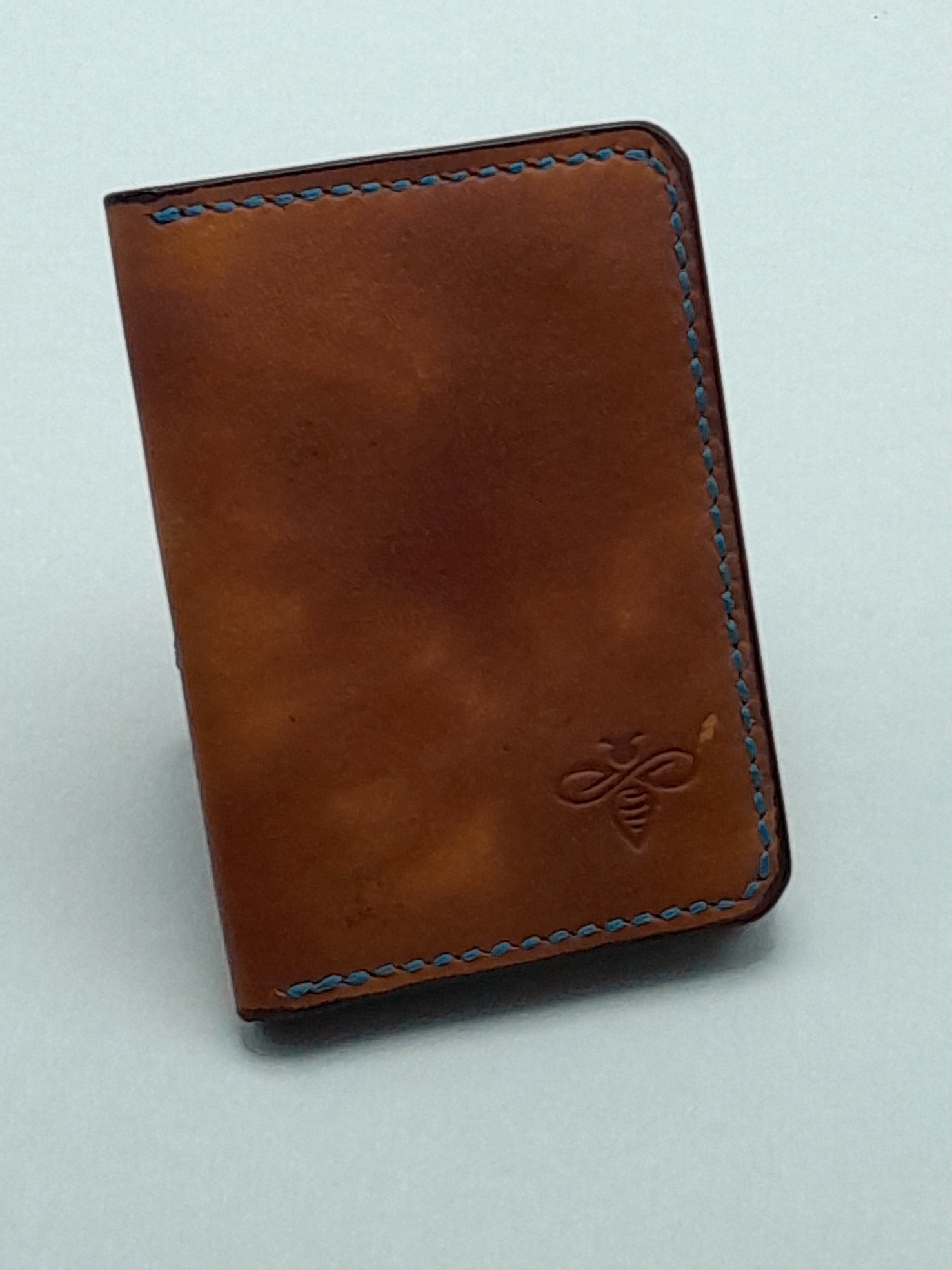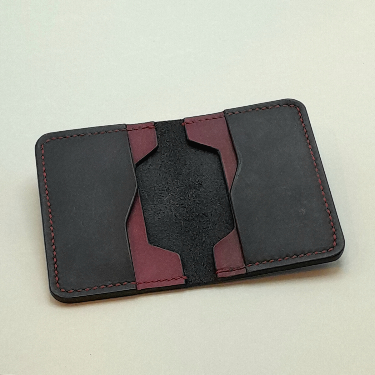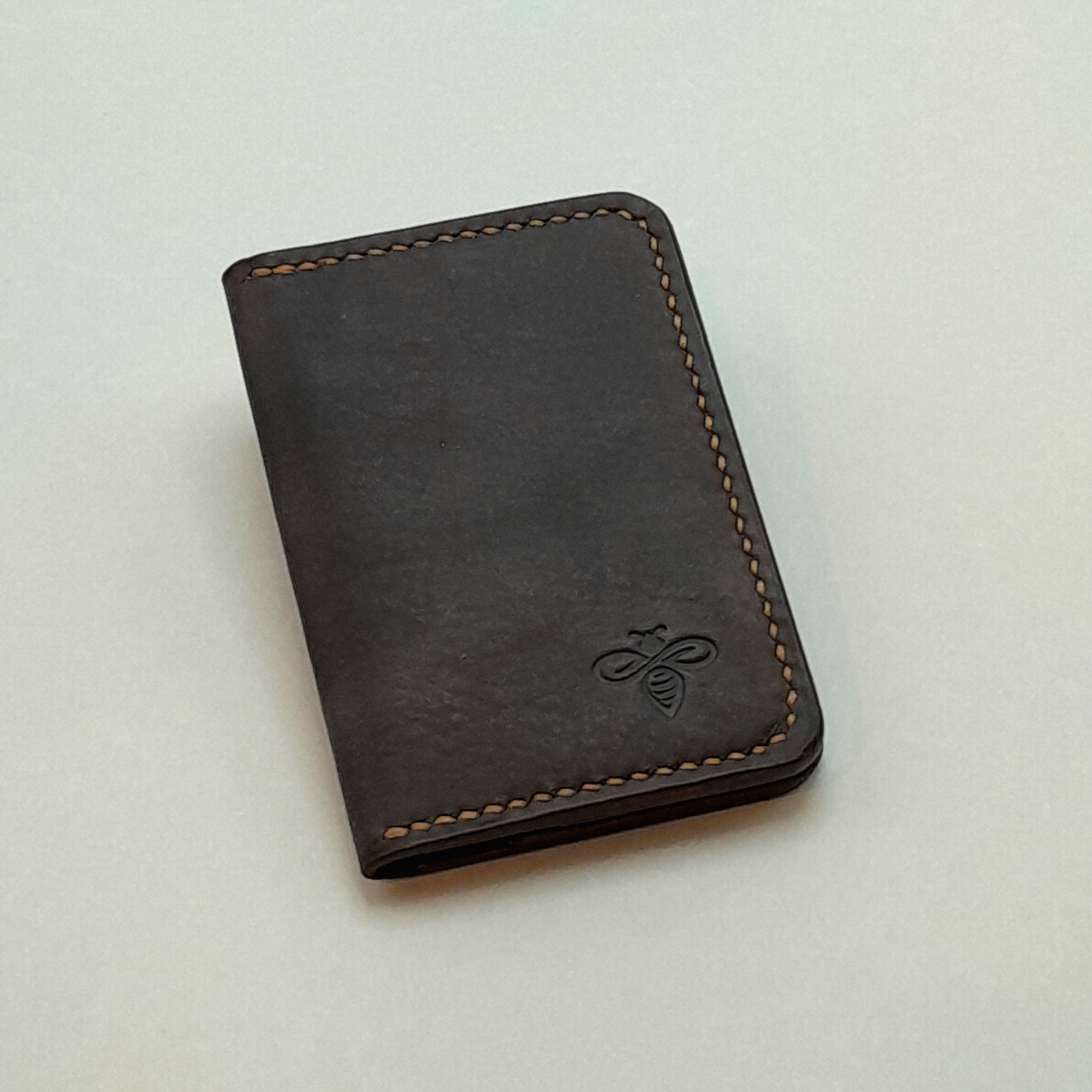 Confeccionada em couro bovino atanado de 1.2/ 1.4 linhas. Cortada, tingida e costurada a mão. Divisórias em linhas retas. Costura francesa e bordas brunidas manualmente.