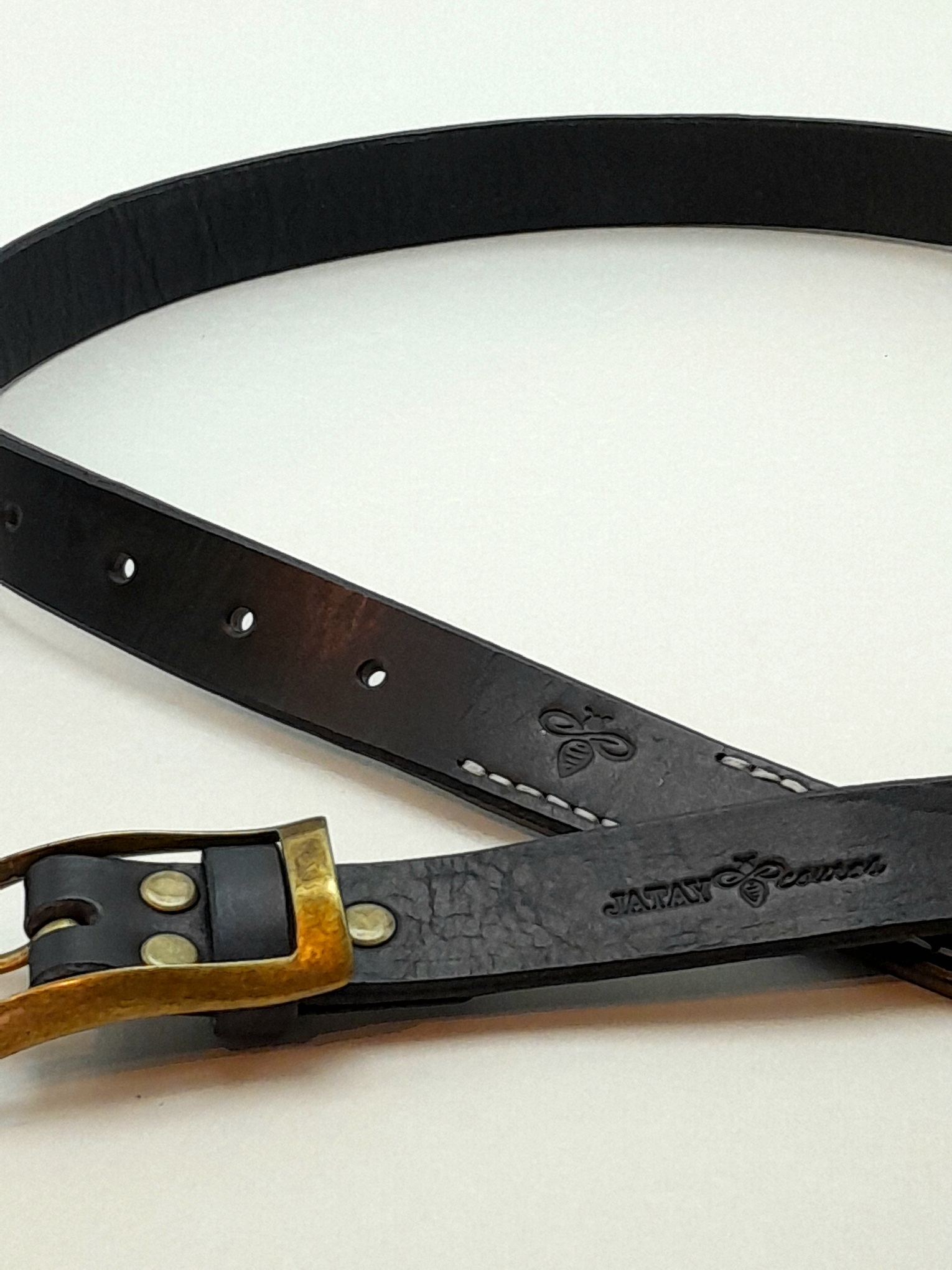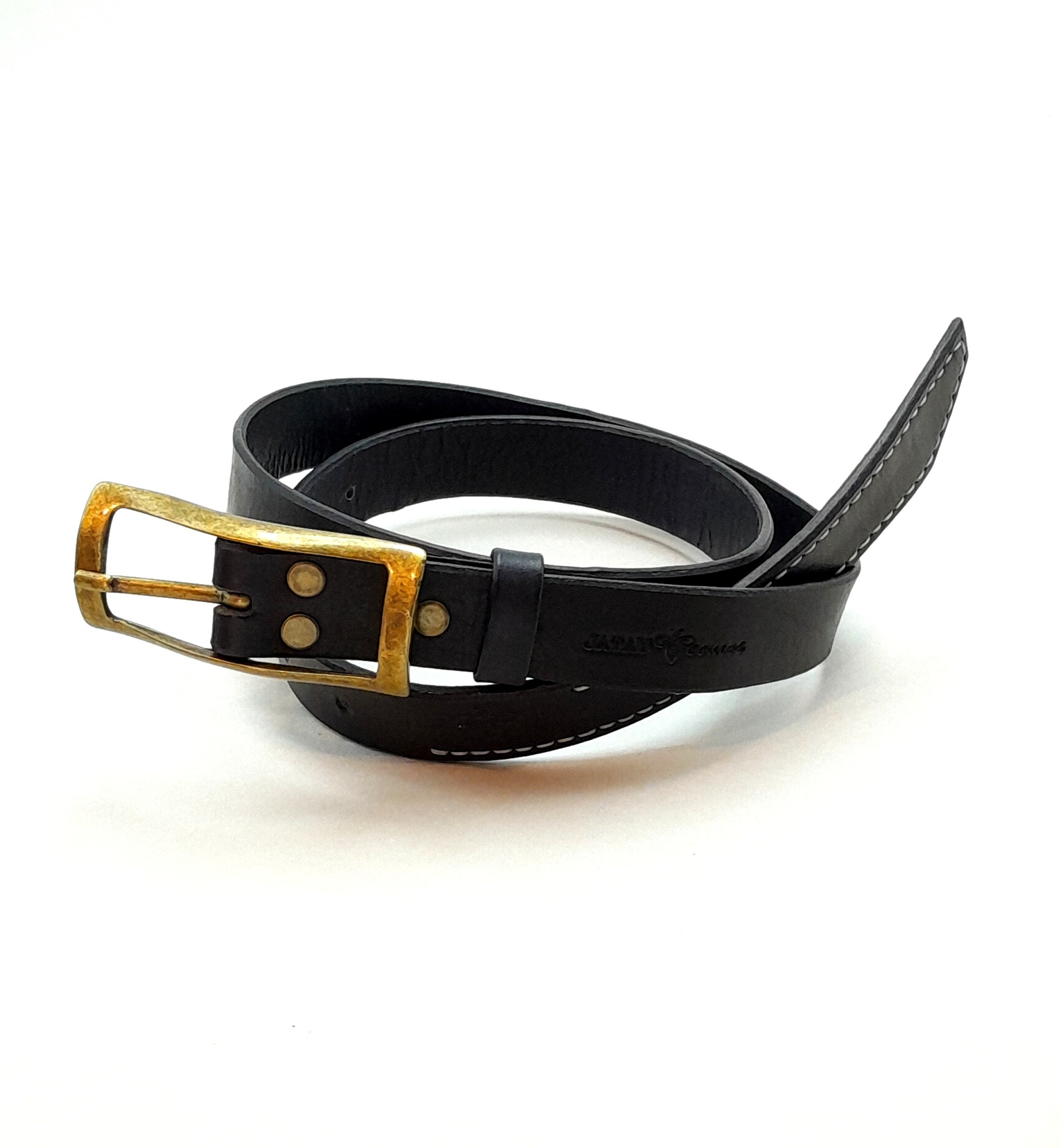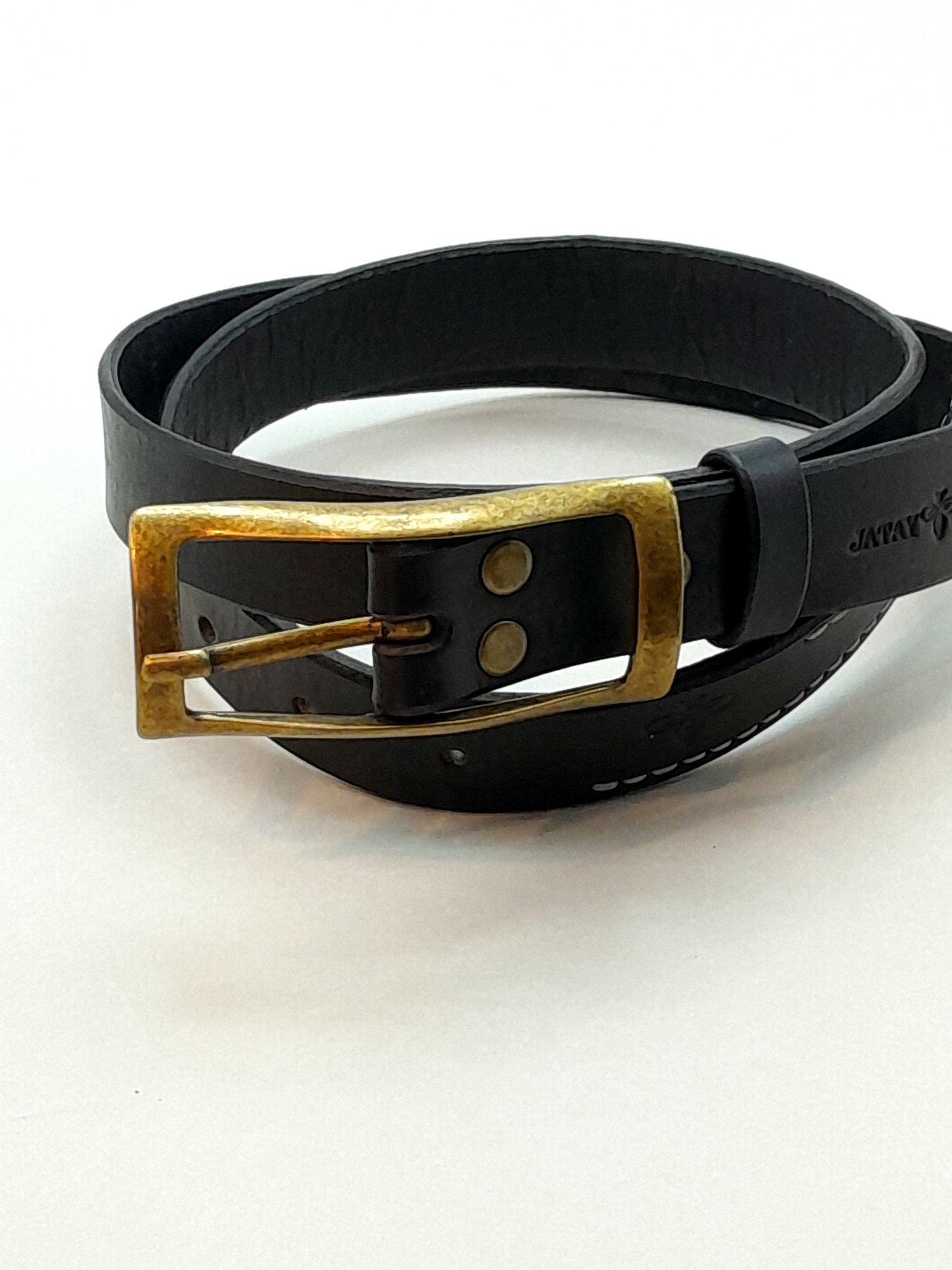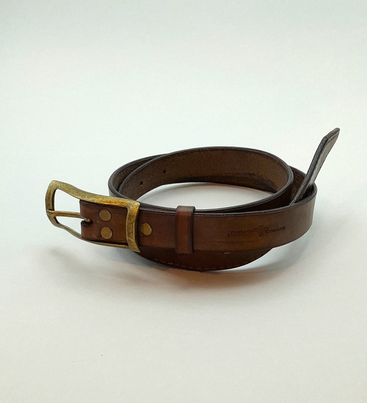 Confeccionado em couro bovino atanado de 35 linhas na espessura e 2.5 cm na largura. Fivela dupla na cor ouro velho fosco. Detalhe em costura francesa na ponta e bordas inteiramente brunidas manualmente.