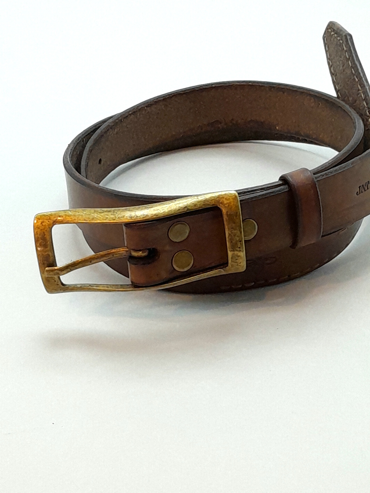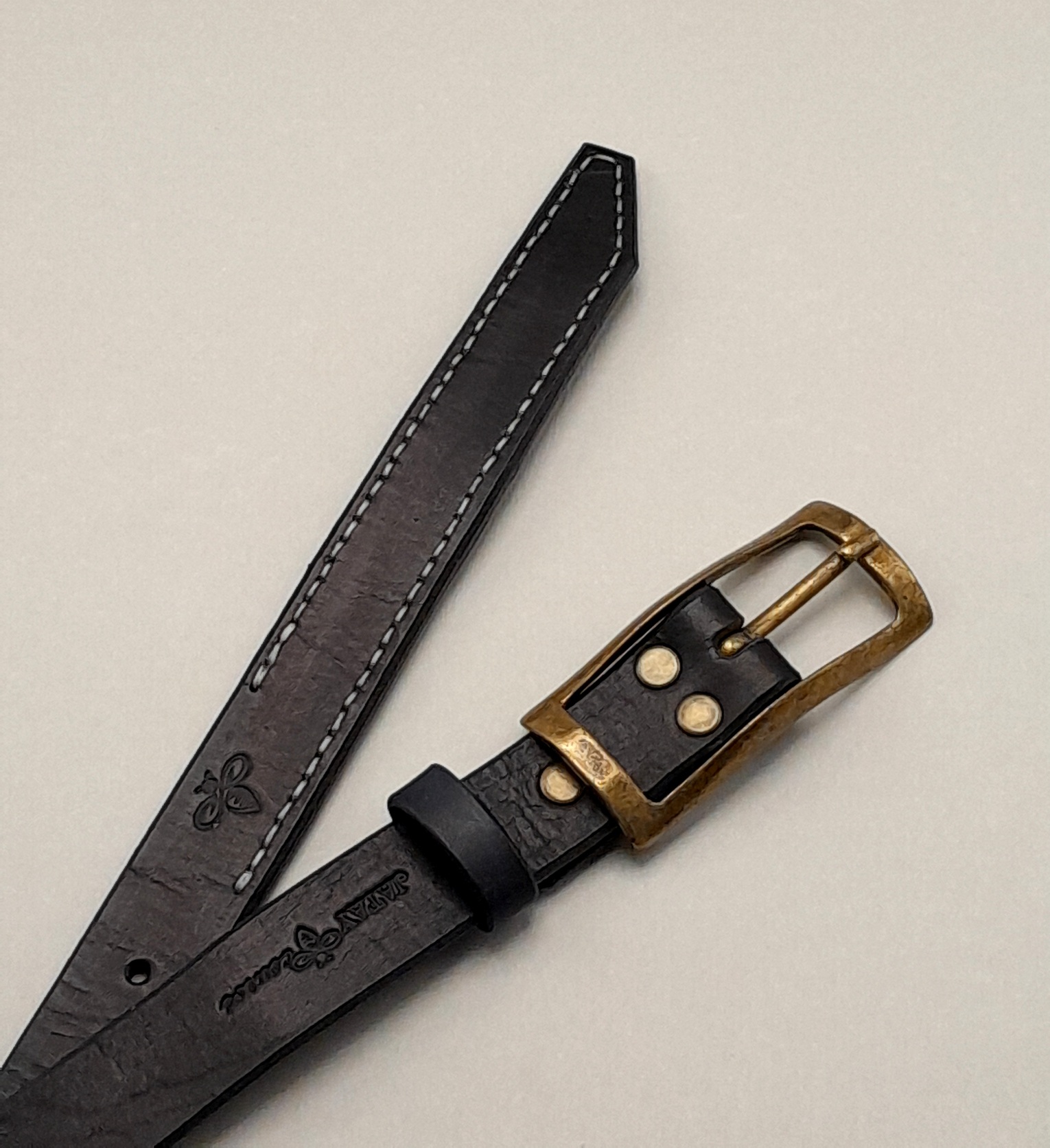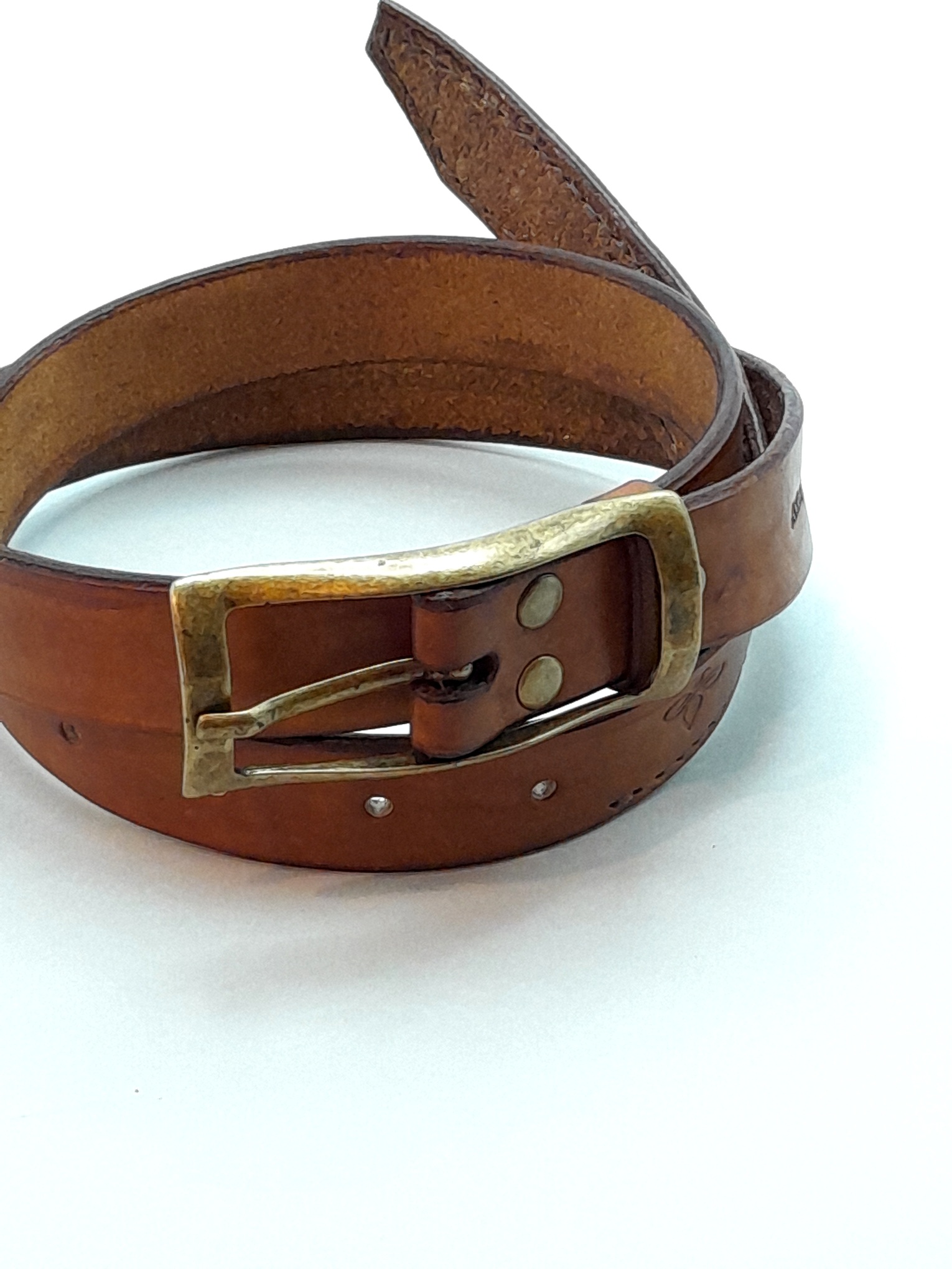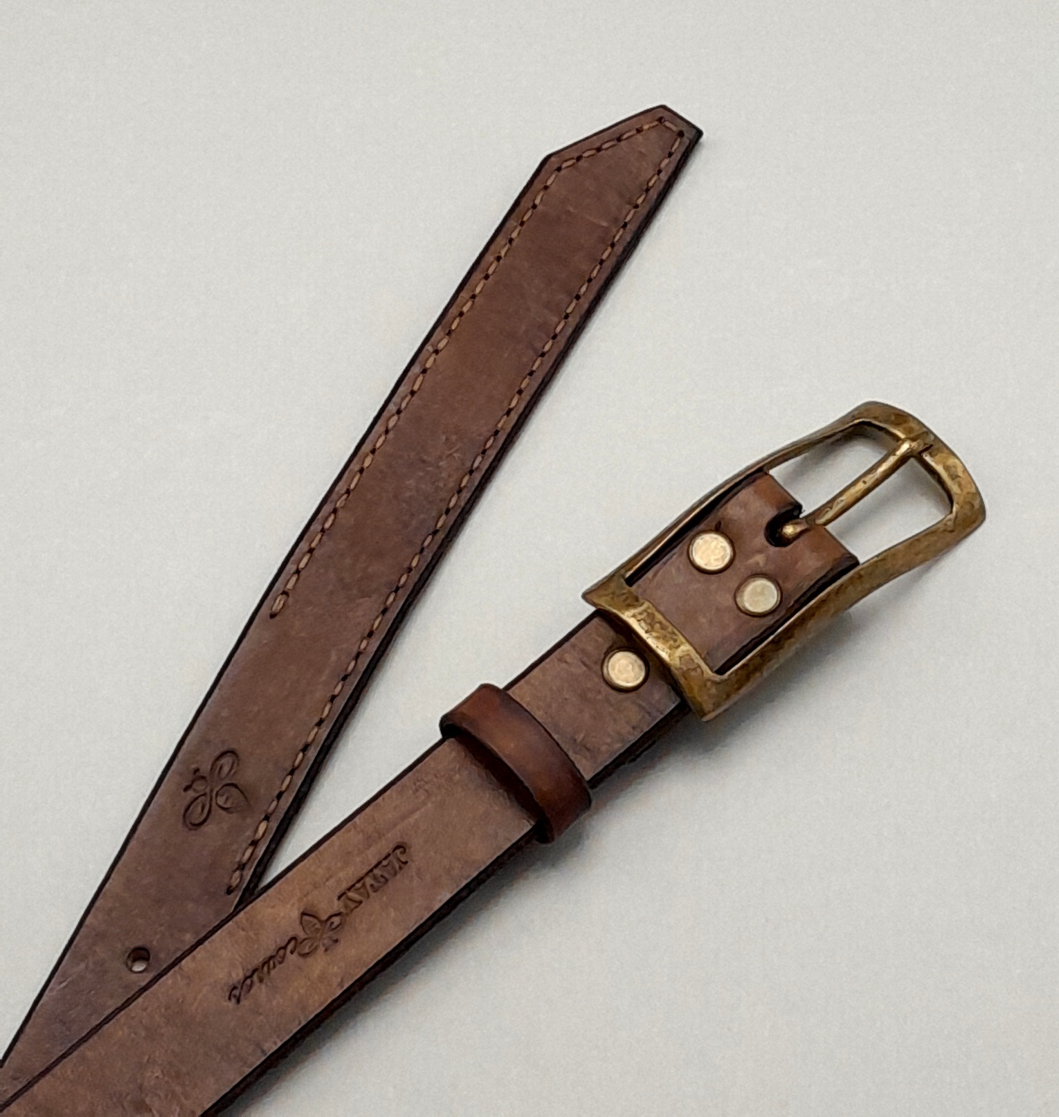 Confeccionado em couro bovino atanado de 35 linhas na espessura e 2.5 cm na largura. Fivela dupla na cor ouro velho fosco. Detalhe em costura francesa na ponta e bordas inteiramente brunidas manualmente.