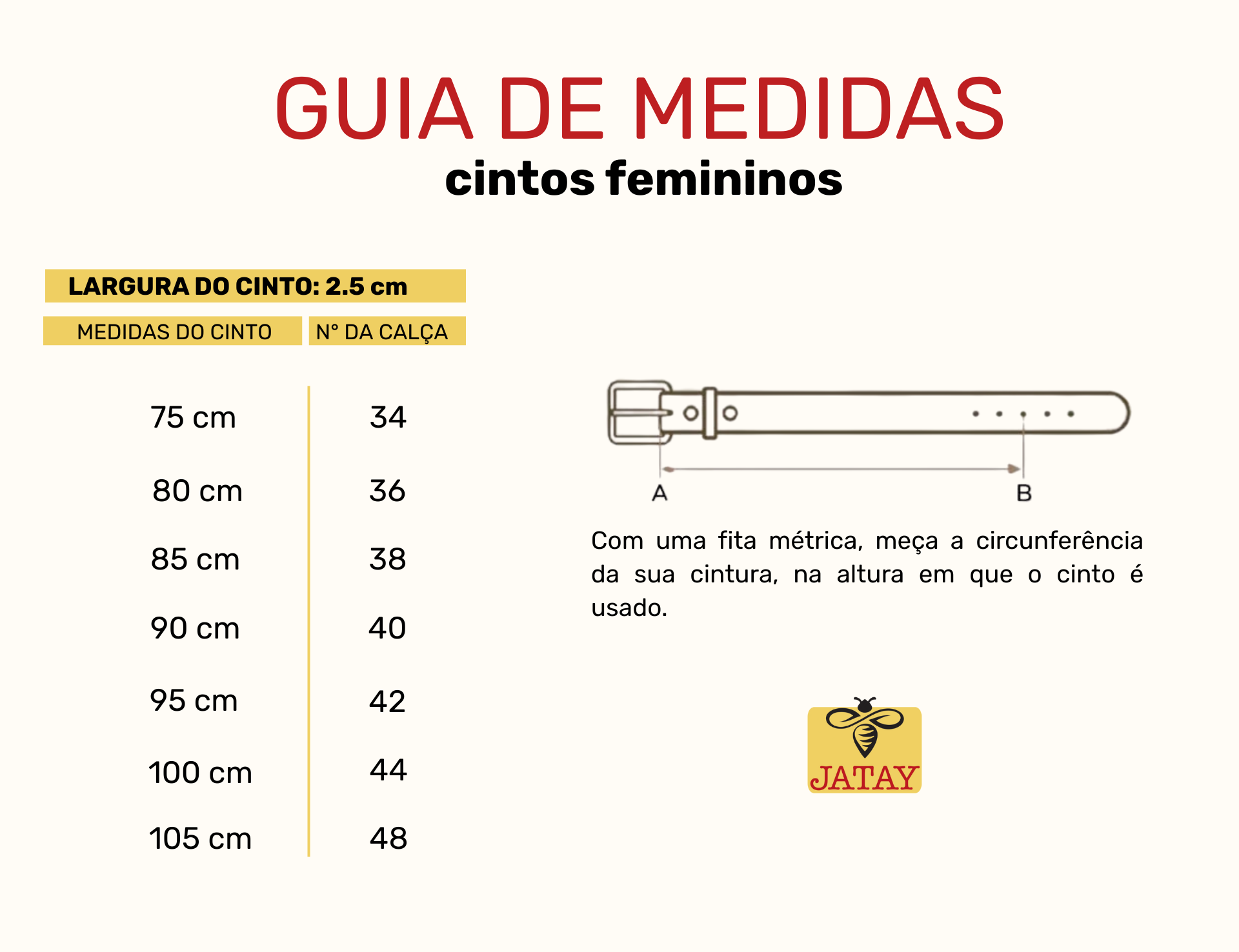 | Tamanho | 75 cm, 80 cm, 85 cm, 90 cm, 95 cm, 100 cm, 105 cm |